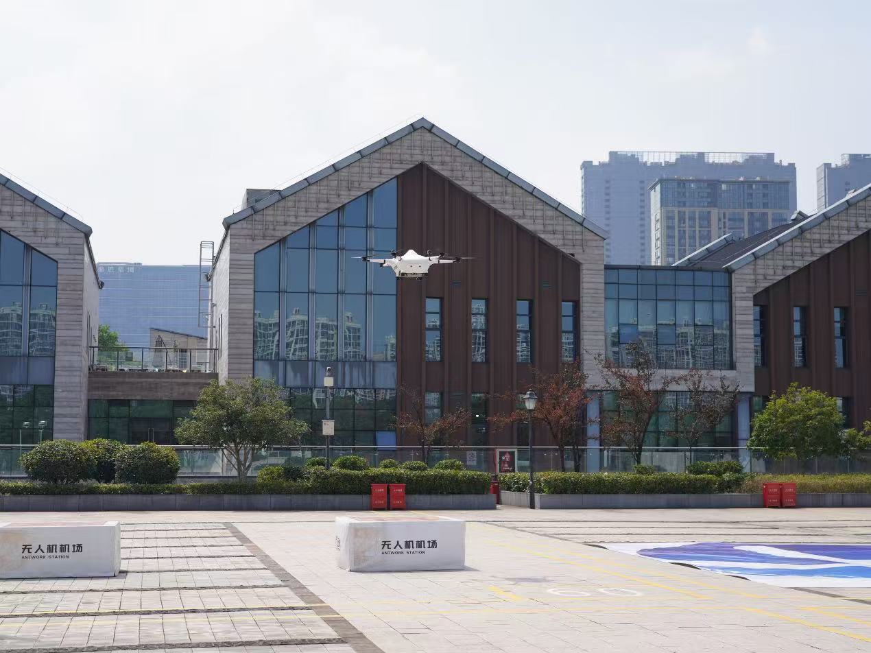 去年9月,梦想小镇起降场建成投用,可以为无人机运行企业提供无人机起降、充换电、存储等各类地勤服务,由杭州低空公司负责建设和运营。目前,迅蚁科技、韵鸢科技等多家无人机运营企业进驻梦想小镇起降场,并开通了多条物流配送航线供日常运输所需。